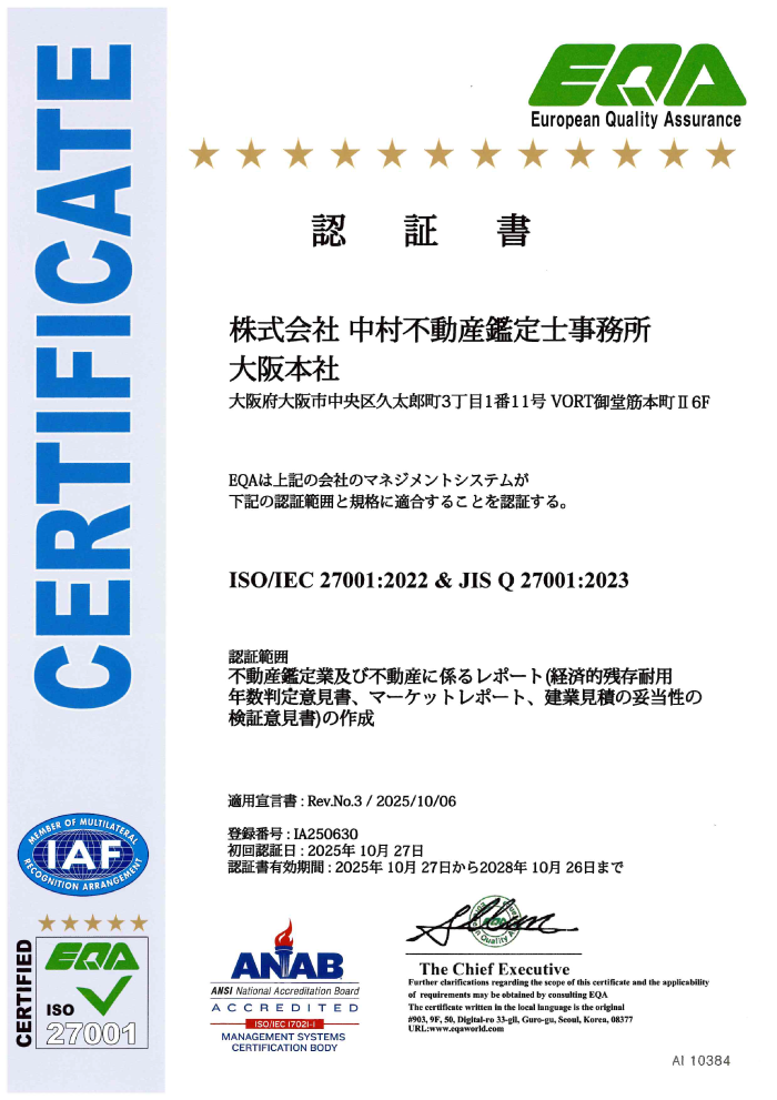 株式会社 中村不動産鑑定士事務所(以下、「当社」といいます。)は、全ての情報資産を事故・災害・犯罪などの脅威から守り、お客様ならびに社会の信頼に応えるべく、 以下の方針に基づき全社で情報セキュリティに取り組みます。